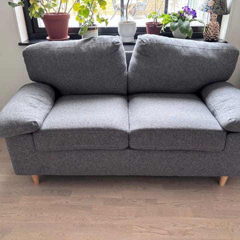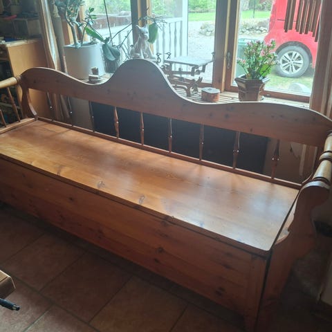 Då vi inte har plats så säljer vi denna lilla furusoffa som är i fint skick.