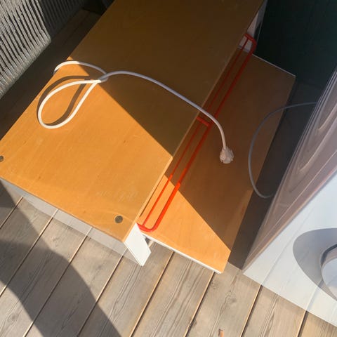 Bosch ung och häll skänkes bort. Finns att hämta i Vendelsö. Fungerar bra, men tydligt använd. Fläcken går troligen att rengöra med en noggrann tvätt.