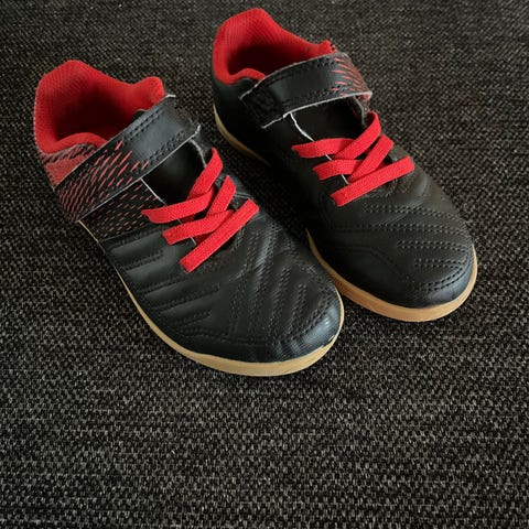 Neongula fotbollsskor för inomhus, svarta för grusplan. Båda i storlek 29, bara använda en säsong vardera. Båda för en hundring :)