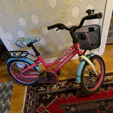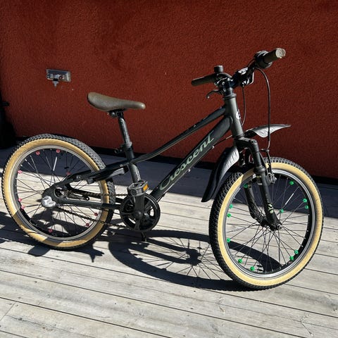Crescent barncykel med 20" hjul i grön färg. Utrustad med, fotbroms bak samt handbroms fram. Vi har upplevt den som lättcyklad.
