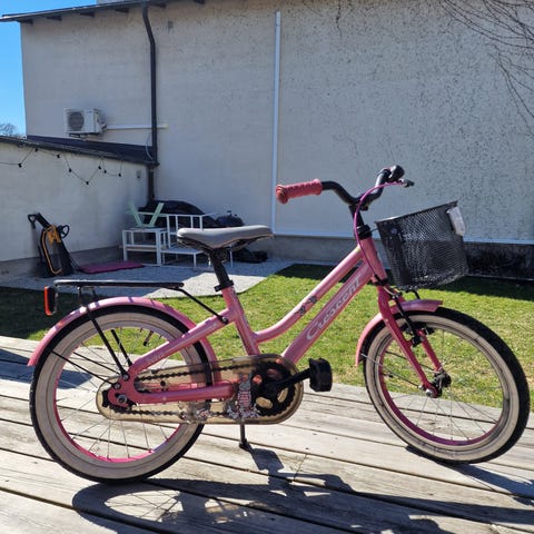 Crescent barncykel med 16" hjul. Cykeln har låg ram som underlättar på- och avstigning för barn. Utrustad med skärmar och kedjeskydd. Passar som första eller andra trampcykel för barn som vuxit ur mindre storlek.