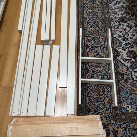 2 st våningssängar ena är använd och benen utfasade för golvlist.