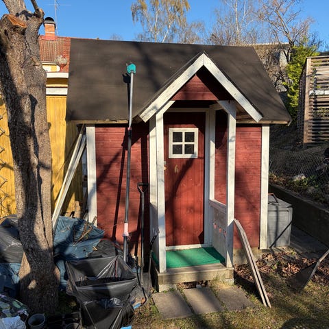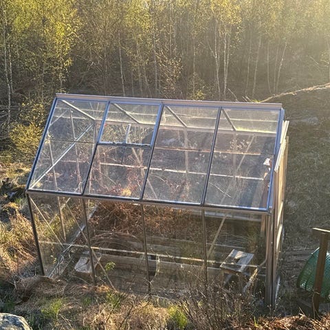 Pallkragen under växthuset kan ingå om man vill rensa bort och kasta det som ligger i den.