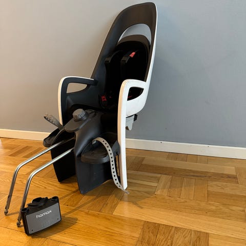 – Barnstolen monteras på pakethållaren.