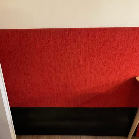 Fin sänggavel i svart konstläder. Gaveln har vadderad, rutquiltad design med knappar och är avsedd att placeras bakom en säng mot väggen. Passar som ryggstöd vid läsning eller vila i sängen och ger ett enhetligt avslut på sänglösningen.