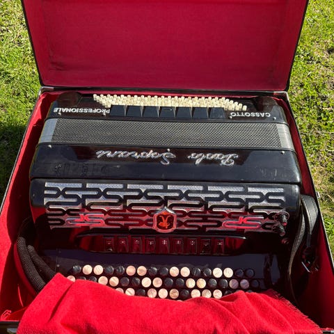 Smidigt tvåkörigt italienskt L’Artigiana dragspel. Fint skick och låter fantastiskt! Finns i Kville, Göteborg.