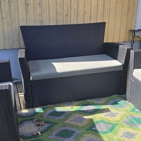2 fina svarta aldrig använda dynor 62 cm * 62 cm, passar många av Ikeas utemöbler!