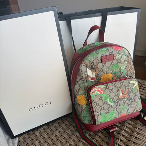 Michael Kors ryggsäck för kvinna i fuskläder. Väskan har blå bottenfärg med blommigt mönster och guldtonade metalldetaljer samt MK-logga framtill. Utrustad med justerbara axelremmar och bärhandtag upptill. Ryggsäcken har dragkedja upptill, ytterfack med dragkedja på framsidan samt öppna sidofack. Invändigt finns huvudfack med plats för mindre personliga tillhörigheter. Passar som vardagsväska eller mindre dagryggsäck.