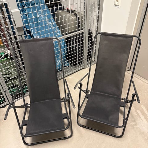 3 oanvända brassestolar svarta perfekt att ha med på stranden, camping osv. 200 kr för alla tre.