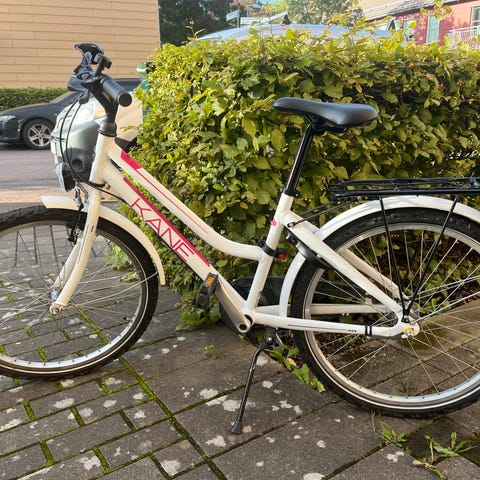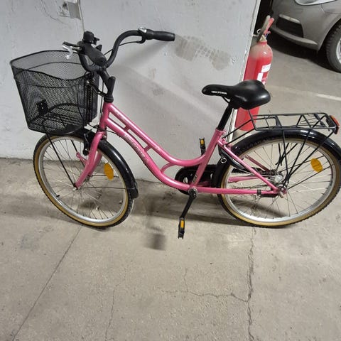 Peak Cycle Kids barncykel med 24 tum hjul i lila färg. Cykeln har lågt insteg, pakethållare bak, stänkskärmar och stöd. Utrustad med handbroms fram och bak samt bekväm sadel anpassad för barn. Passar för vardagscykling till skola och fritidsaktiviteter.