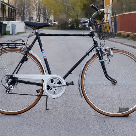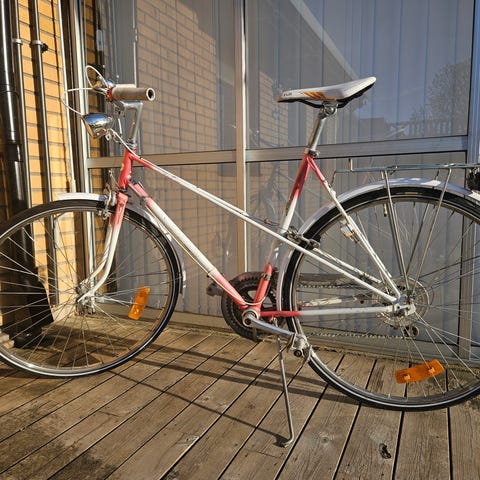 Cykeln är köpt av en bostadsrättsförening och är nyrestaurerad; däcken är nya, liksom styrbanden. Kedjan är avfettad och nysmord och bakväxeln är ordentligt städad och nyfettad. Allt fungerar som det ska och cykeln är redo att cyklas direkt.