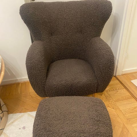 Säljer den fina fårskinn fåtöljen Mycket bekväm snurrar köpt från Mio 12000