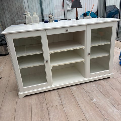 Fin vit gedigen tv bänk inköpt hos Englesson i Djursholm.