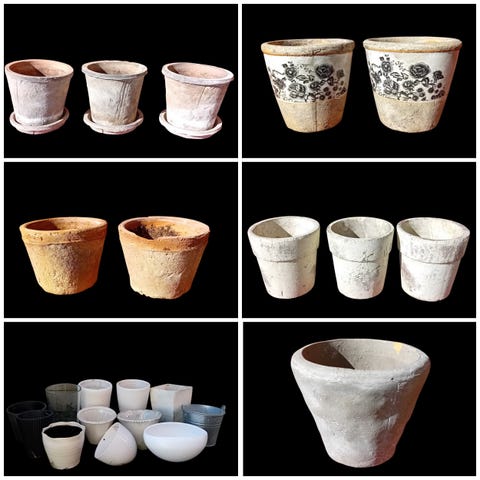Säljer ett set med 9 terrakottakrukor i klassisk modell. Alla är hela, stabila och i fint begagnat skick. Perfekta för både inne- och uteplantering.