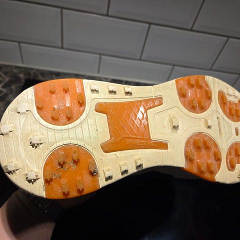 Ecco golfsko för herr i storlek 44. Skon är främst vit med svarta och orangea detaljer samt snörning framtill. Yttersulan har fasta dubbar anpassade för golfspel och ger grepp på banan. Levereras i originalkartong enligt bild.