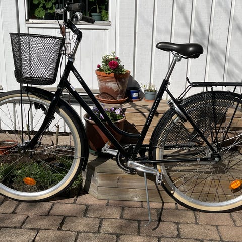 Monark 28 tum, 3 växel, lås med 2 nycklar, fot och hand broms, pakethållare, reflexer, korg, ringklocka.