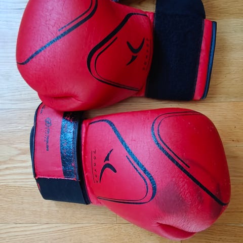 Boxningshandskar i unisexmodell, storlek 12 oz. Handskarna är svartvita med kardborreknäppning runt handleden för justerbar passform. Passar för boxningsträning, säckträning och enklare sparring. Materialet är syntetiskt med vaddering för stötdämpning och skydd för händer och handleder.de är väl använda lite trasiga på utan se bilder
