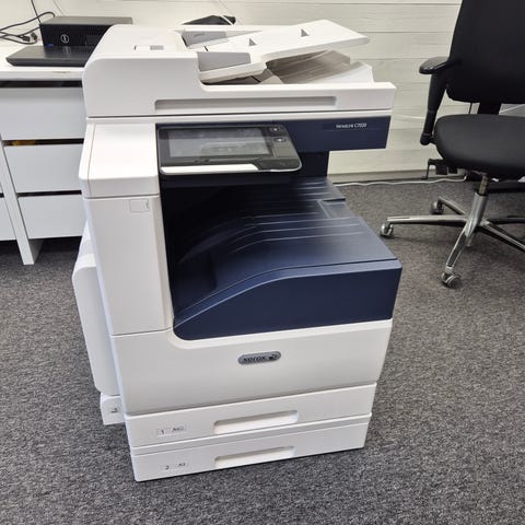 Xerox WorkCentre 7830. Multifunktionsenhet för utskrift, kopiering och skanning. Modell: J-B132. Utrustad med flera pappersmagasinn