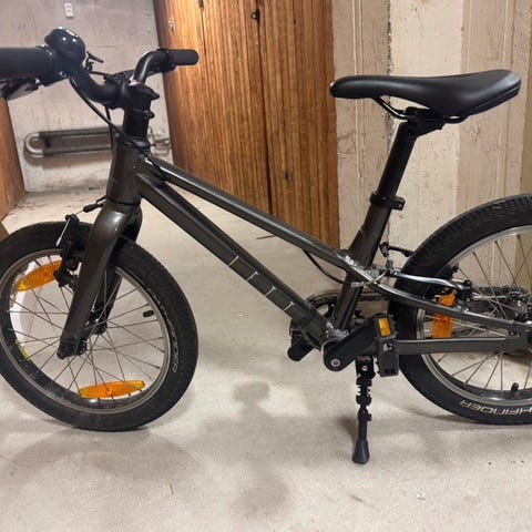 Cykeln har en ram i gul färg med blå detaljer och är utrustad med breda däck som ger bra grepp på olika underlag. Utrustad med platt styre, fotpedaler och sadel anpassad för barn. Passar som vardagscykel och för enklare cykling på grus- och skogsstigar för barn i den storlek som motsvarar 20" hjul.