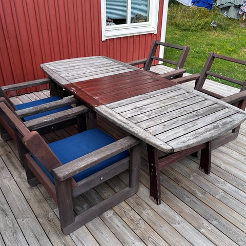 Bordet är sparsamt använd men har förlorat färg i solen. Går dock säckert bra att måla, eftersom det är gjord av trä.