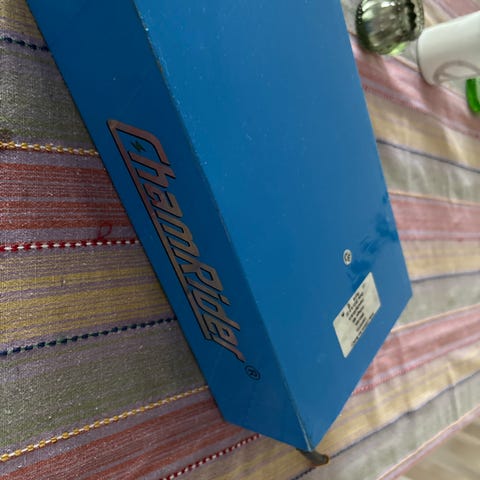 Prowell cykelhjälm i färgerna blå och silver. Hjälmen har flera ventilationsöppningar och justerbart spänne under hakan. Levereras med vaddering/inlägg enligt bild. Passar för cykling och liknande aktiviteter där huvudskydd behövs.