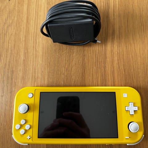 Handhållen modell med inbyggda styrspakar och knappar. Konsolen är avsedd för bärbart spelande och stödjer Nintendo Switch-spel som kan spelas i handhållet läge. Skärm och reglage är integrerade i en enhet, vilket gör den lätt att ta med sig. Passar för användare som vill spela Nintendo Switch-spel i ett kompakt, portabelt format.