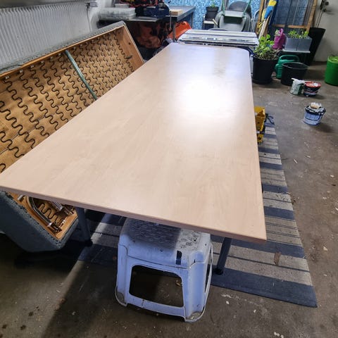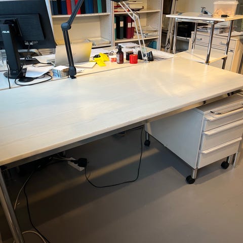 Perfekt som arbetsbord i verkstad, garage, lager, montageyta eller hobbyrum. Bänken har en robust metallstomme och stor arbetsyta som passar bra för montering, packning, servicearbete eller förvaring av verktyg och material.