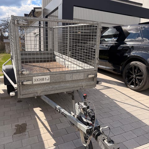 Tiki släpvagn med gallergrindar. Galvad konstruktion med en axel och galler runt flaket för lastning av exempelvis trädgårdsavfall, byggmaterial eller annat skrymmande gods. Släpvagnen har dragstång för kulkoppling och är avsedd för personbil. Lämplig för allmänna transport- och fritidsändamål.