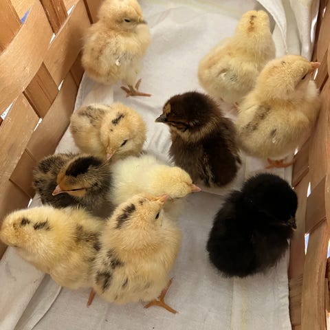 Kycklingarna behöver värmelampa/värmetak de första månaderna tills de fått sina vuxenfjädrar.