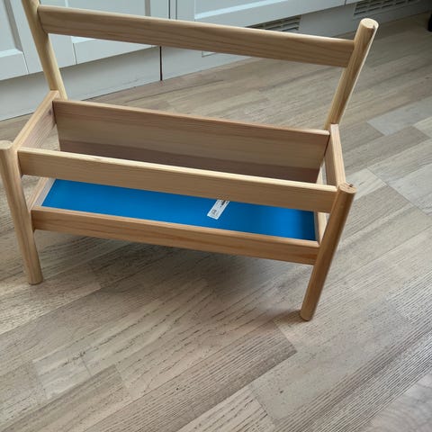 Med det här låga bokstället kan ditt barn se och nå sina böcker själv. Det blir dessutom enklare att välja eftersom alla framsidor syns. Blir valet ändå för svårt kan ni ta det med er till läshörnan.