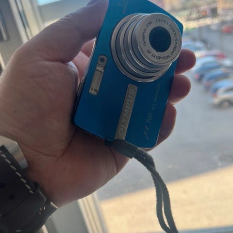 Olympus Camedia C-70 Zoom digitalkamera i silverfärg med 3,2 megapixel upplösning och 3x optisk zoom. Kameran har inbyggd blixt, LCD-skärm på baksidan och optisk sökare. Den använder xD-Picture Card som minneskort och har USB-anslutning för överföring av bilder till dator. Kameran drivs av batterier som placeras i facket på sidan. Passar för allmän fotografering, till exempel vardagsbilder och enklare resedokumentation.