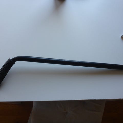 Cykelstång för barnsits i metall. Stången är silverfärgad med svart gummihandtag och fäste för montering på cykel. Avsedd för att koppla barncykel eller barnsits till vuxencykel, eller som stödstång/dragstång beroende på modell och användning.