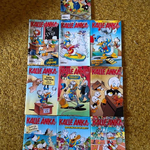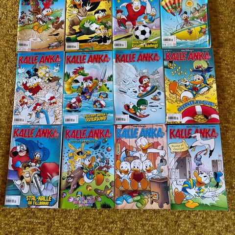 Kalle Anka & C:o serietidningar i blandade dubbel nummer. Färgglada omslag med Kalle Anka och övriga figurer från Ankeborg. Serien är i tidningsformat och lämpar sig för läsning och samling. Innehåller olika teman och berättelser med Kalle Anka och hans vänner. Antal och exakta årgångar framgår inte av informationen utan bör kontrolleras vid intresse.