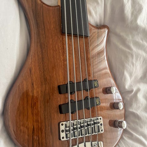 5 string, Custom lined-fretless, active/ 3 band eq.