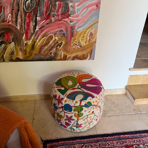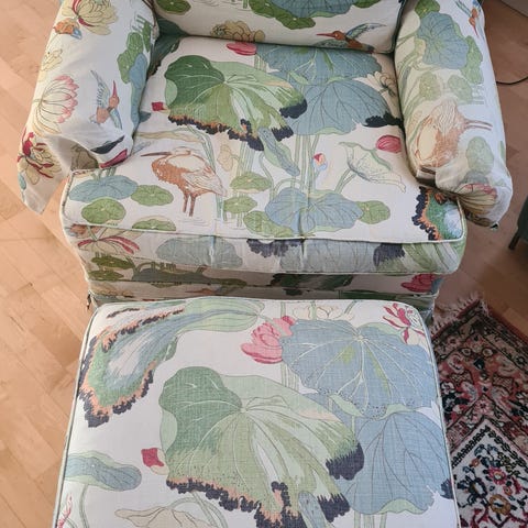 Kanske lägga ett annat Svenskt Tenn-tyg om sitskuddarna för att göra den ännu snyggare?