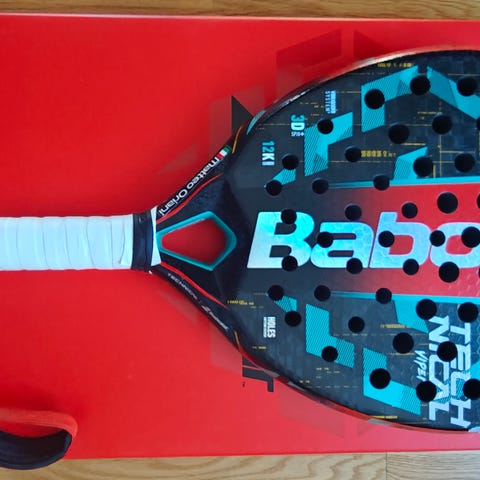 Babolat padelracket och padelväska samt Asics padelskor svart