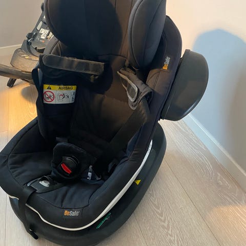 BeSafe bilbarnstol i storlek 18. Bilbarnstolen är i grått tyg med mörkare detaljer och har inbyggd internsele. Stolen är avsedd för montering i bil och har stödben samt fästen för säker fastsättning. Passar för barn inom den angivna storleks- och viktklassen enligt märkning på stolen. Lämplig för användning som bakåtvänd bilbarnstol beroende på bilens och barnets förutsättningar.
