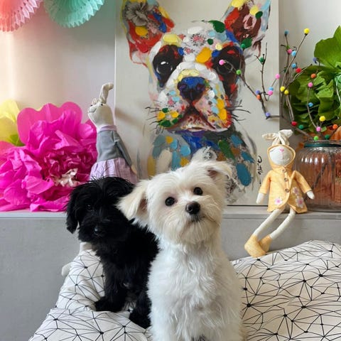 Följer också med koppel, leksak, snuttefilt och lite mat.
