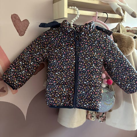 Polarn O. Pyret jacka för barn i storlek 104 för flicka. Jackan är flerfärgad med blommigt mönster och är tillverkad i bomull. Modellen har dragkedja framtill och långa ärmar. Passar som lättare ytterplagg eller som överdragströja inomhus och utomhus.