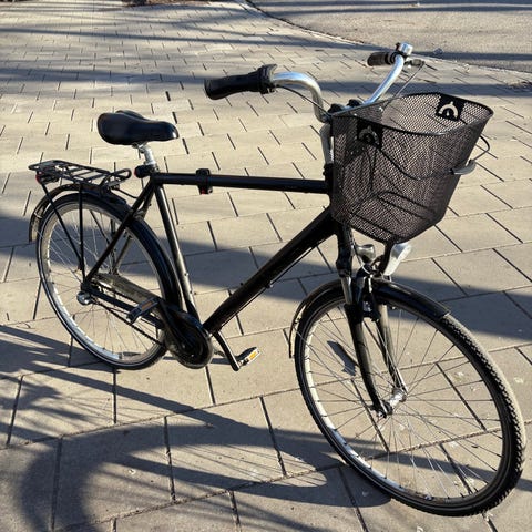 Elmotorn sitter i navet och cykeln är avsedd för stadskörning och pendling, passar för vardagscykling, inköp och transporter i stadsmiljö.
