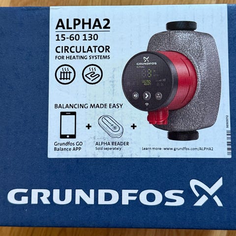 Grundfos UPE 15-40 130 cirkulationspump för värme- och cirkulationssystem. Pumpen är avsedd för 1x230 V/240 V, 50 Hz och levereras i originalförpackning. Modellbeteckning UPE15-40 130, lämplig för installation i värmesystem, tappvarmvatten- eller cirkulationsanläggningar där en kompakt cirkulationspump behövs.