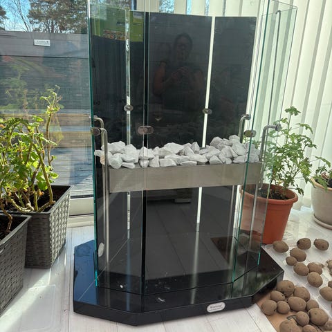 Pris för terassvärmaren 3 500 kr, och för värmare + gasolflaskor + låda 6 000 kr.