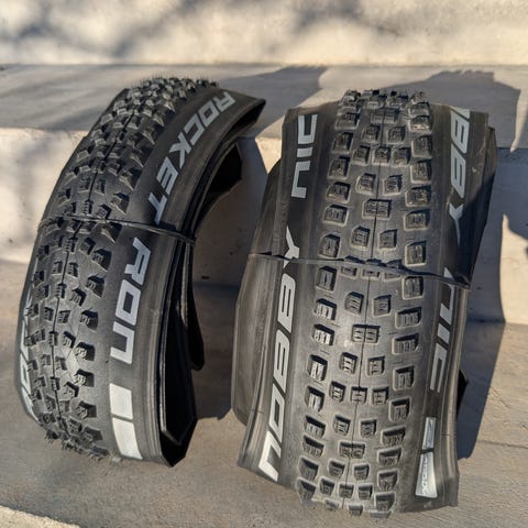 Ett par helt nya cykeldäck som inte blivit använda pågrund av felköp.