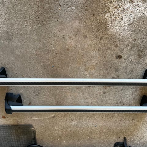 Takräcke i aluminium med svarta plastfästen, Mercedes original passar till E-klass kombi 2010-2016. Består av två lastbågar som monteras tvärs över bilens tak, lämplig för takbox.