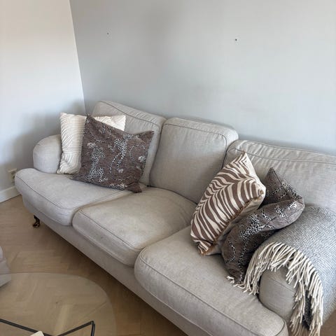 Fin Oxfordsoffa från Mio. Klädsel är i ok skick - inga uppenbara fläckar men kan behöva tvättas. Tyget på undersidan av soffan har lossnat delvis men inget som påverkar funktionen. Mindre soffa som är perfekt för det lilla vardagsrummet eller liknande. Hämtas hos säljare.