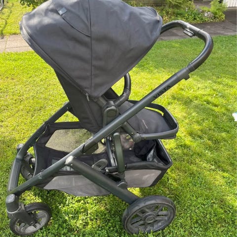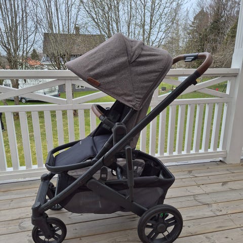 UPPAbaby ståbräda till barnvagn/syskonvagn. Ståbrädan har två hjul och en ståyta med halkskydd samt fästen för montering baktill på vagnen. Fälls ned med knapp, fälls upp genom att bara putta upp den, så fastnar den. Passar UPPAbaby Vista.