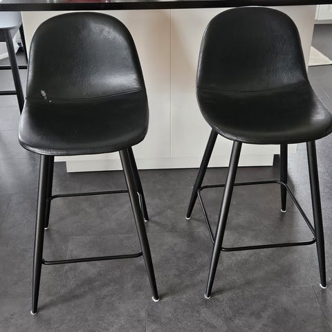 Säljer 2 barstolar som är bekväma och fina i modellen. På bilderna ser man att stolarna har använts väl men fortsatt mycket stabila. Stolarna är köpa på Mio.