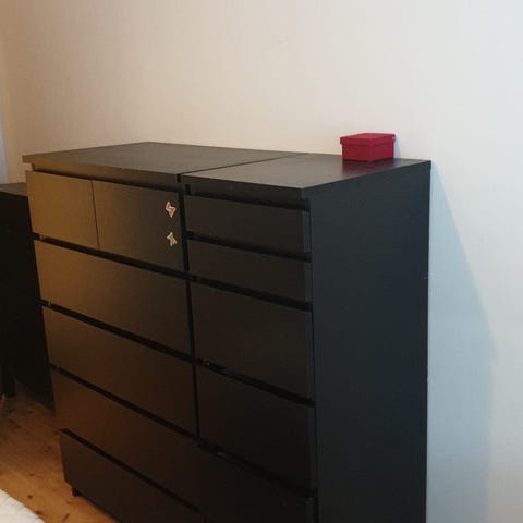 I fint skick, men använd. Ett märke som syns på ena bilden. Ena lådan också lite trög, men funkar fint.