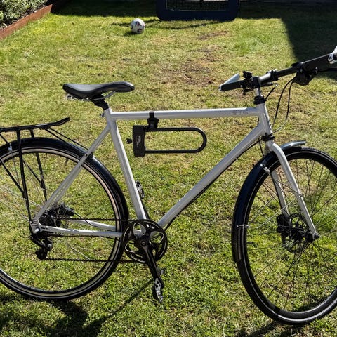Sportig STC Skeppshult cykel i mycket bra skick. Inkapslade 8 växlar med klickstopp. Pakethållare och flaskhållare.