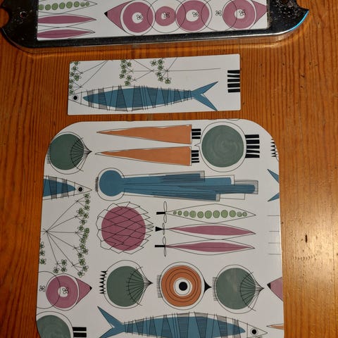 Glasunderlägg med kattmotiv i rund form. Underläggen har tryckta illustrationer av katter i olika färger och uttryck på enfärgade bakgrunder. Passar som glas- eller muggarunderlägg på bord och andra ytor i hemmet.